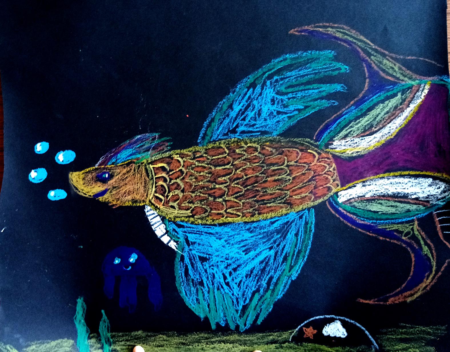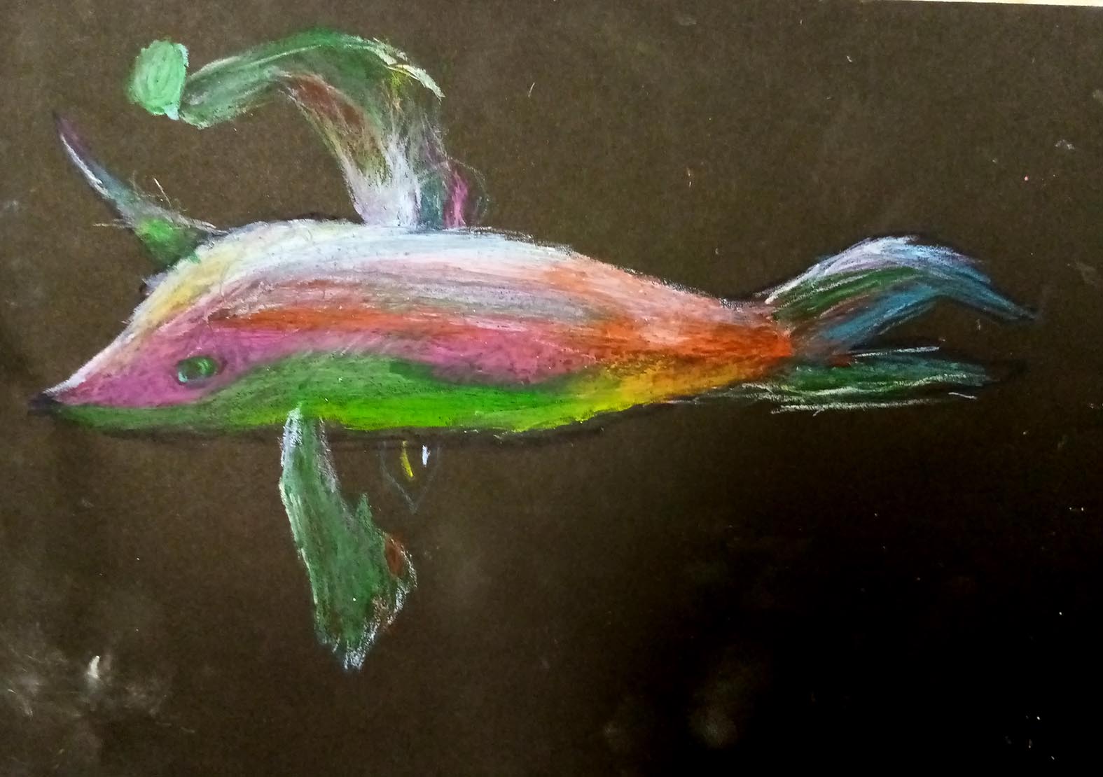 Travail de saison. Qu’il est bon de dessiner d’près photo, de s’inspirer et de voir surgir sa créature au pastel gras des profondeurs du fond noir…