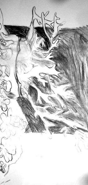 En une séance de 1h30, dessins de yokaï réalisés par les enfants de 10 à 13 ans… Toujours avec beaucoup de documentation sous la main (aujourd’hui, yokaïs divers et Hokusaï !)