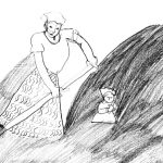 Pendant trois séances de 3heures, les enfants ont (beaucoup!) dessiné à partir de photographies d’époque, ils ont choisi ce qui leur plaisait, ce qui les touchait dans une documentation très riche. Nous nous sommes ainsi créé une banque d’images très riche dont nous nous sommes servi pour réaliser des illustrations. (… je me suis occupée de la partie mise en scène, trop compliquée pour une configuration salle de classe !)