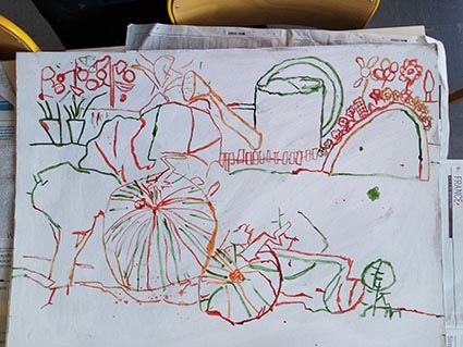 Les séances durent une matinée… ça peut être long, et nous avons beaucoup de travail, aussi nous alternons le travail sur l’habitat (travail individuel) et celui sur le paysage (travail collectif).